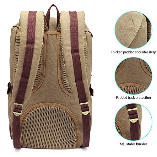 - Canvas Imported HIGH QUALITY & DURABLE MATERIAL. HIGH QUALITY Canvas makes the backpack soft and comfortable. The rucksack backpack is more high-end with the durable and eco-friendly canvavs. The contoured shoulder straps and back side comes with protective air mesh padded design, easy and comfortable to carry throughout all day. Adjustable padded shoulder straps (45-90cm), tighten and loosen easily.