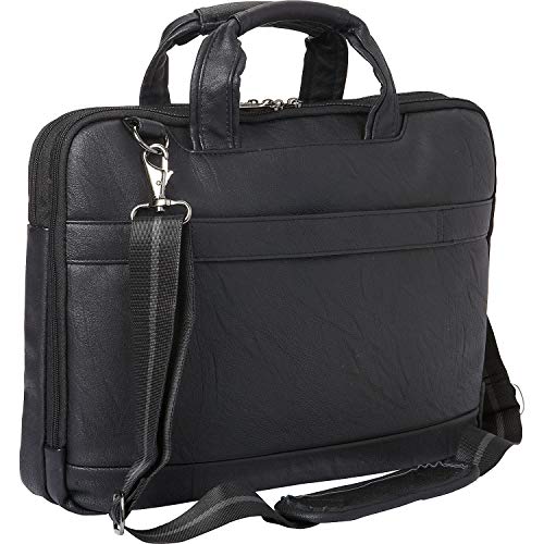 Details: Stroll in business savvy style with this Kenneth Cole REACTION faux leather slim double compartment top zip 16.0" Computer business case. Features a padded laptop compartment that is compatible with most laptops with up to 16.0" Screen and also features a padded tablet pocket. Front exterior includes a full length zipper pocket and a open top slash pocket and is padded to accommodate a laptop. Rear compartment features a zipper pocket, a two file divider and an organizer that includes a tablet pocket, an phone pocket, an open top accessory pocket, and pen loops. Rear exterior includes a trolley strap to fit over most upright handle for hands free carrying. Product also features a removable, adjustable and padded shoulder strap that extends 52" Inches. The perfect business savvy laptop business case for professionals whom value both style and function