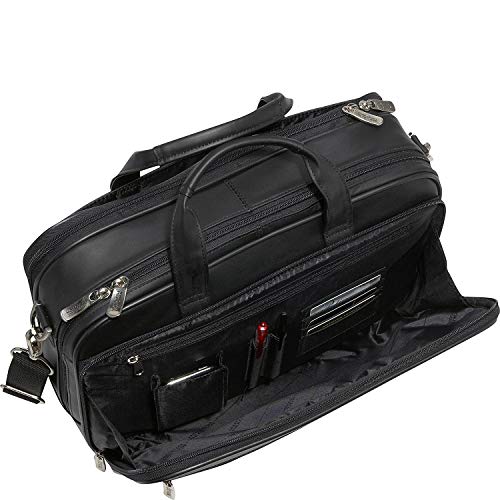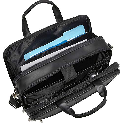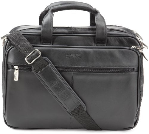 - Genuine top grain leather exterior with rommy double gusset construction and fully lined interior