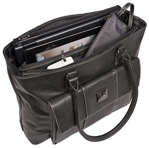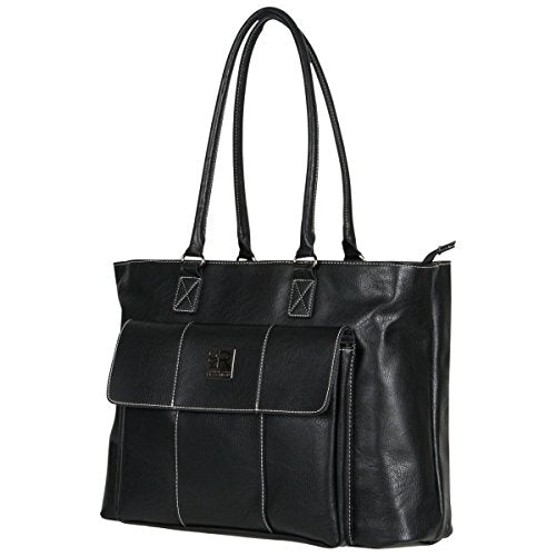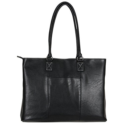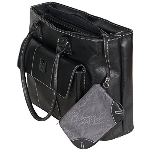 Details: Pebbled PU single gusset top zip 16" computer tote holds most laptops with up to a 16" screen. Compatible with most tablets. Pebbled PU exterior body material with fully lined interior. Front exterior flap over pocket with hidden magnetic closure includes an organizer with a zipper pocket, cell phone pocket, open top PDA pocket, three card slots, and two pen loops. Main compartment is divided by a full length zippered tablet pocket. Front wall of main compartment consists of two padded open top accessory pockets and a removable zippered accessory pouch. Back wall of main compartment includes a padded computer pocket. Rear exterior features an easy access open top pocket. Tote style handles to be worn over the shoulder. Overall Dimensions: size: 17.0" w x 13.0" h x 6.25" D. Computer compartment Dimensions: 15.25" w x 10.3"H x 1.5" D. Item weight: 3.1 lbs. Manufacturer lifetime limited warranty.