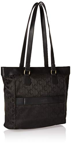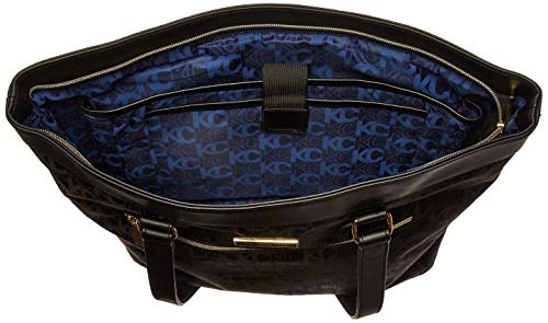 Details: Laptop pocket is padded to fit most laptops with up to a 15.0" Screen Tablet Pocket is padded and compatible with most tablets hi-density KC logo jacquard polyester exterior and faux leather trim with a tear-resistant, fully lined tear-resistant navy embossed polyester interior Front exterior features a full length zipper pocket with two open Slip Pockets inside distinctive eye-catching shiny gold hardware roomy main compartment includes a padded tablet pocket and laptop pocket as well as plenty of room to store other needed belongings Rear exterior features a trolley strap to fit over most upright handles for hands free carrying features tote style handles made to be worn over the shoulder with an 13 inch handle drop premium self-repairing gold zippers designed for long-lasting use size: 16.0" L x 13.5" H x 5.5" D laptop pocket Dimensions: 15.0" H x 11.0" L x 1.0" D Weight: 1.6 lbs. includes a lifetime limited manufacture warranty