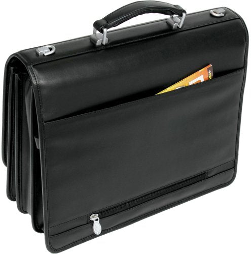 - Clean line design features secure key lock on front flap Front compartment with space for files