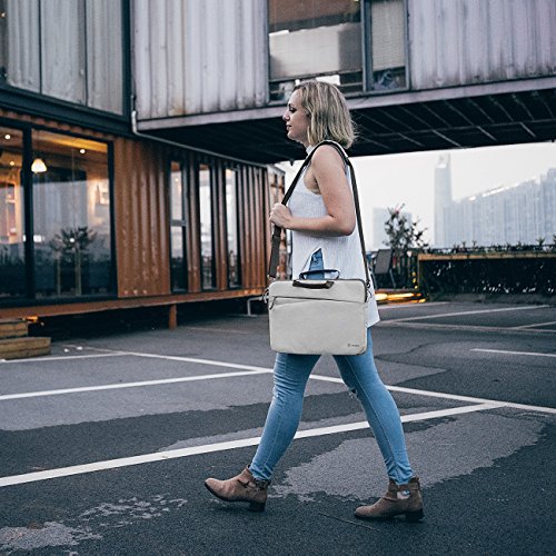 The shoulder bag features a main compartment with silk feel for your laptop, while multiple accessory pockets, including a dedicated inside pocket for iPad, organize and store your accessories and other essentials.