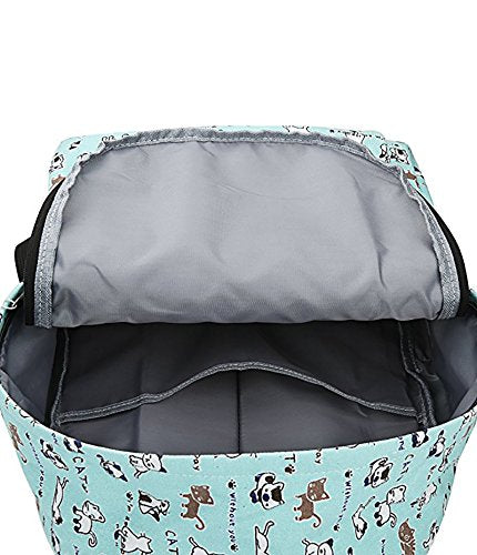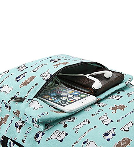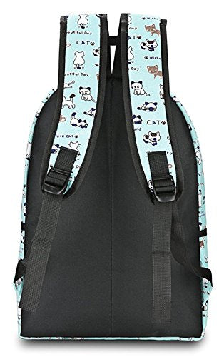 Travel Lightweight Canvas Cute Print Backpack Girls Women For School and Laptop (Green cat)