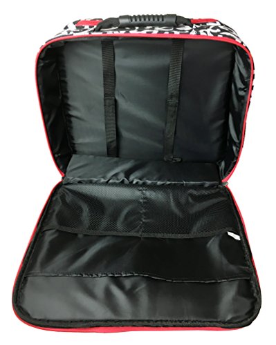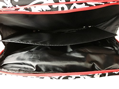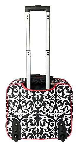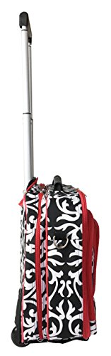 Details: 4 main compartments zip completely open. 1st compartment: several smaller pockets great for carrying phone, pda, pens, cards, calculator, etc. 2nd compartment: clear of any obstructions and multi functional. 3rd compartment: padded area for a laptop with 2 Velcro securing straps and 3 pockets for carrying computer related accessories. 4th compartment: filing divider great for keeping items such as; books, folders, papers, documents, files, etc. Detachable and expandable shoulder strap with a comfortable padded middle section 2 sturdy wheels at the bottom. Padded top handle and extendable top handle with push button.