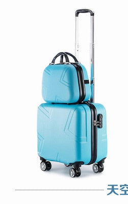 Unisex 2Pcs Carry On Travel Suitcase Women Laptop Luggage Stripe Pattern Small Luggage 18 Inch