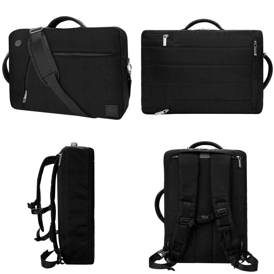 - 3-in-1 hybrid laptop bag transforms into a backpack, messenger bag, and briefcase tote