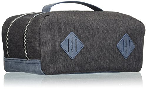 Details: Denim look polyester/distressed matte faux leather trim with budweiser branded lining, budweiser brand logo patch and brushed nickel hardware urban west double zip travel kit features a top carry handle, two zip top compartments, two exterior lash tabs and water resistant lining.