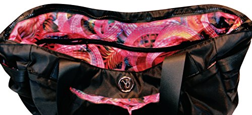 Details: This stylish soft and durable micro ber bag features aoversize interior compartment for all your dancing supplies. TheAdage interior and outer pockets are all lined with a bright multi color print. This bag boasts a total of seven pockets including two full front exterior pockets, one with toggle pull, the other with zipper plus two exterior side pockets. Adjustable shoulder strap included.