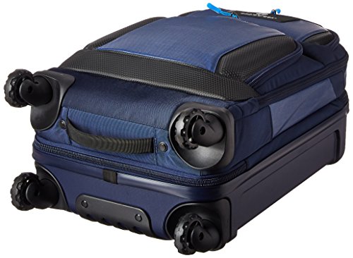 - 4 TREADED WHEELS. This wheeled carry-on has 4 oversized, heavy-duty, treaded wheels in a protective wheel housing and a durable kick plate for smooth mobility and maximum durability. The ultra-durable 360-degree spinner wheels are multi-directional, making mauveuring in any travel situation effortless.