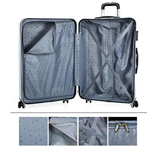 - Grande capacité. Rigide, robuste et légère. Poignée télescopique et 4 roues rotatives. ABS très résistant