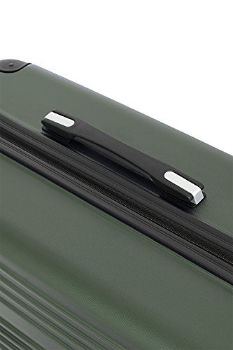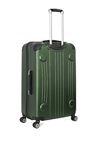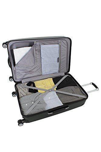 Details: Lightweight ABS hard side luggage, split case design with two large packing compartments, two zipper pockets, shoe pockets, and adjustable compression straps. 8 wheel spinner system. Multi-stage soft grip telescoping handle. 1.5" expandability for additional packing space. Reinforced lightweight carry handles. 5 year warranty.