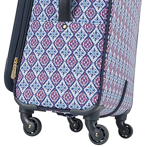 Details: Spend a long week in paradise with the Tommy Bahama Honolulu 24 inch Expandable Spinner Suitcase. The laid back yet refined style of the Honolulu Collection will make you never want to leave, the durable construction and expandable sizes will make it so you'll never have to. Durable polyester Four wheel spinner system Top, side and bottom carry handles Push button locking trolley handle Front exterior zippered pocket Suitcase expands 2" for added packing capacity Fully lined interior with two slip pockets, a zippered pocket and adjustable valet straps 5 Year Warranty ID: 2317C Dimensions: 24" Expandable Spinner Suitcase - 23.5" x 16" x 9" - 7.05 lbs