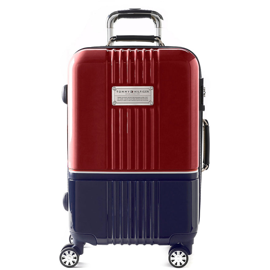 The Tommy Hilfiger Duo-Chrome collection is a 2-Tone composite Polycarbonate with horizontal Signature Tommy Stripe. It also includes a built in TSA Lock, 8 wheels, Push Button handle and has a fully lined interior.