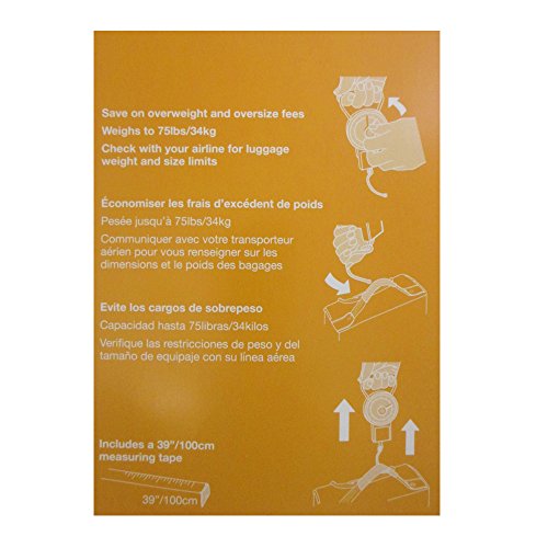 Details: Save on overweight and oversize fees Weighs to 35lbs/34kg Includes a 39"/ 100cm measuring tape WARNING: CA PROP 65 WARNING This product contains chemicals known to the State of California to cause cancer and birth defects or other reproductive harm. RETURN Returns are accepted within 30 days from the date you receive Item must be in the original condition as was received. A 40% will be charged if item has been used or with missing tags. For any undeliverable address, payment will be refunded less shipping cost. Buyer pays return shipping.