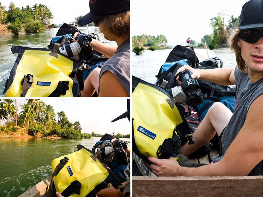 Details: Watershed also put years of raft building and repair experience into our seaming process. Radio frequency waves are applied to all seams under intense pressure, creating a fused bond that will never come undone. And once we are done, each and every bag is inspected to ensure that it is 100 percent leak proof. Mil-spec webbing, hardware, and stitching complete the details. At watershed we know that keeping critical gear dry can be a matter of survival, we understand protecting electronics and other expensive items from water and dust can save you money, and we feel that nothing gives better comfort and peace of mind during outdoor adventures than knowing that your gear is safely sealed in an airtight bag. So whether you're kayaking, rafting, fishing, hunting, sailing, scuba Diving, biking, cruising or just going to the Beach, have fun, we've got you covered.