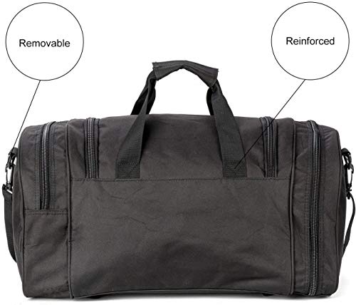 Details: *.*.*.*.*.*.*.*.*.WolfWarriorX Lightweight Gym Bag,Travel Duffel Bag.*.*.*.*.*.*.*.*.* -Built and Tested for Hard-Use The main compartment of this bag is large and offers mildew resistant wipe-down material for longevity and strength over a lifetime for use. The side compartments offer more room for smaller items that need separation from the main compartment. Large areas on the side s and tip flap are ideal for embroidering or printing. If you are looking for a quality gym bag or carry-on bag for flights, this bag will give you years of service. Who will love it? It is suitable for most people, men, women, old and young. When can we use it? IIt could be served as a gym bag, sport bag, travel luggage, airplane carry on, camping luggage, etc. It also can be used as a dirty laundry compartment at home. What can we put in it? Main Compartment for clothes, IPAD, towels, shoes , other sports gym necessities, etc. Front Pocket with mesh for keys cards, cellphones, other small accessories, etc. Separate side compartment expands into the inside of the main compartment 7’’X7’’X24’’ to store dirty clothes or boots. Side compartment for other small objects Feature: - Multiple zippered compartments - Heavy Duty self-healing zippers - Large zip pockets on front and sides - Reinforced handle - Adjustable 2'' padded shoulder strap - Reverse zippers - Water resistant