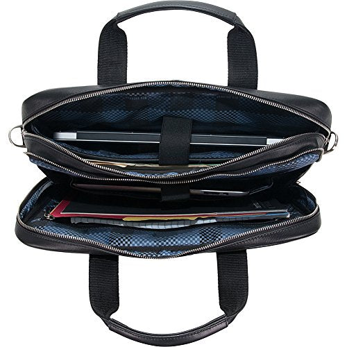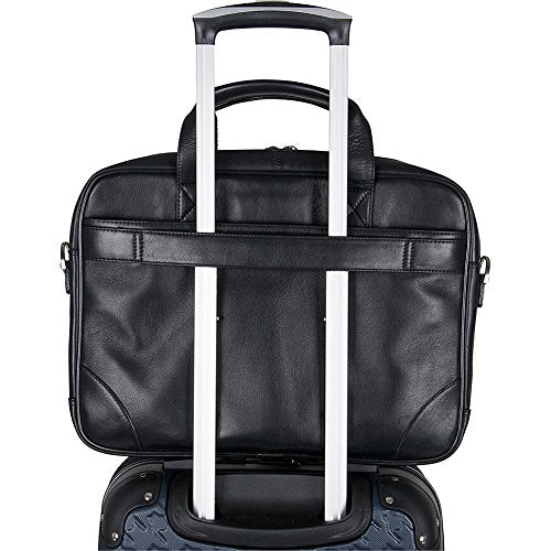 Details: Premium Karino Leather double compartment top zip 15" Computer case/ Business Portfolio laptop pocket: padded pocket fits most laptops with up to a 15.0" Screen. Tablet Pocket: padded pocket compatible with most tablets. Premium, Karino Leather exterior with a tear-resistant, fully lined interior. Front exterior features a hidden zipper with an extensive organizer pocket to hold a variety of business essentials including pen/ pencil holder. First compartment features a full length zipper pocket and a padded tablet pocket. Rear compartment includes a padded laptop pocket and plenty of room for additional folders and files. Rear exterior has a zipper pocket and trolley strap made fit over most retractable trolley handles for convenient hands-free carrying. Includes a removable shoulder strap with an adjustable shoulder pad that extends 52 inches. Overall size: 15.75" L x 11.5" H x 3.25"D. Computer pocket Dimensions: 15.0" L x 10.0" H x 1.0" D. Weight: 3.25 lbs. Backed by a manufacturer 10 year limited warranty.