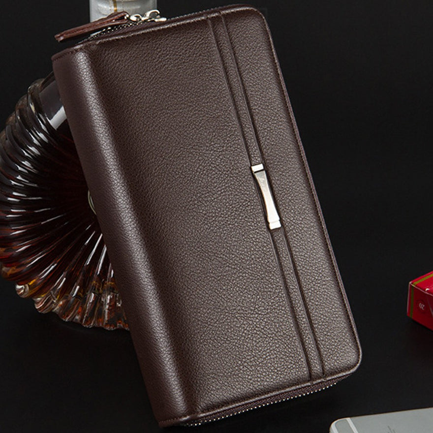 Business Men Luxury Wallets Long Pu Leather Cell Phone Clutch Wallet Purse Hand Bag Top Zipper