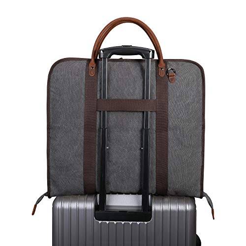 Details: S-ZONE Canvas Genuine Leather Trim Suit Carry On Suit Garment Bags for Travel, Business Trips & Storage with Shoulder Strap
