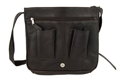 - 2 open pockets and 1 zip pocket under the flap. Full-length exterior open pocket in back.