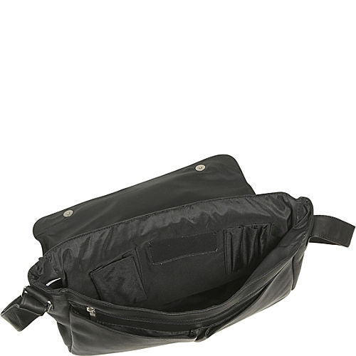 Keep your business essentials handsomely stowed in the David King East/West Full Flap Messenger.