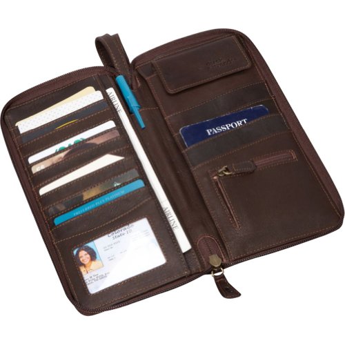 Details: The wallet is secured closed with a zip around zipper. On the interior there are three vertical multi-functional slide pockets, a clear ID window, a slot to hold your passport, 11 credit card slots and also find a horizontal zippered pocket for your coins or small items. There is also three full length slide pockets for coupons, receipts, and event tickets. This wallet also includes a removable men's billfold wallet that when opened, it tucks into one of the slide pocket which can also use for travelers cheque. On the exterior of the wallet, you will find a full width zip pocket and a front slide pocket.
