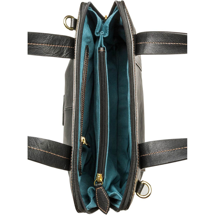 • Two leather top straps, and a detachable and adjustable shoulder strap.