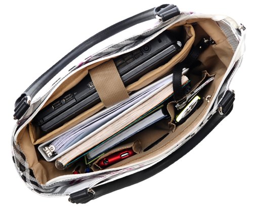 Details: The Jill-e Designs E-GO Tote features a stylish plaid body with top grain, weather resistant leather trim and handles. The protective padded interior helps to protect your items. Compartments inside are perfect for your personal items. A separate protective sleeve for a 15" laptop computer helps protect your investment while keeping it handy. This bag is easy to carry with comfort grip handles with 8.5" drop. Dimensions: Length 15.5", Width 4", Height 14.5". Weight 2.5lbs. Color: Tan Plaid
