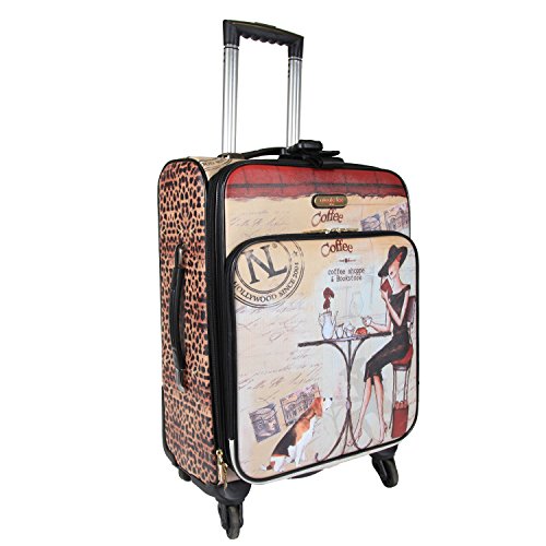 Nicole Lee Women'S 20" 4 Wheels Expandable Carry-On Luggage Beige Time Print, Coffee