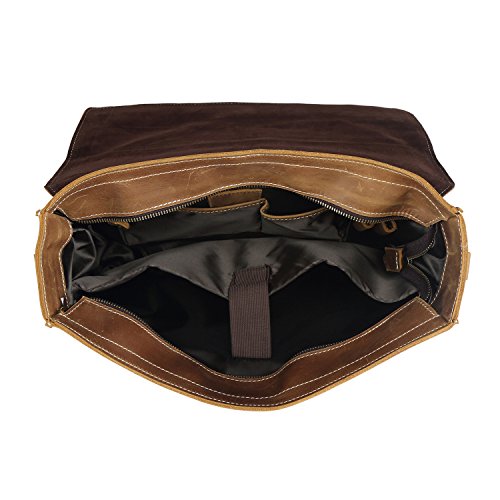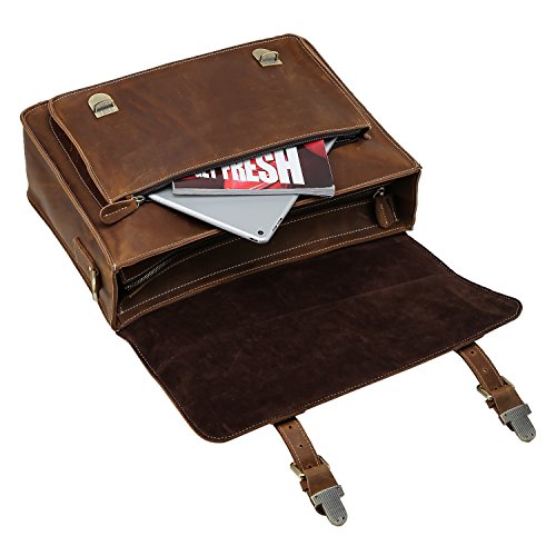 Polare Men'S Full Grain Leather Laptop Briefcase Messenger Bag Vintage Travel Case