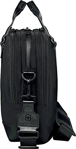 Details: This laptop brief features a slim and compact design making it the perfect companion for your daily commute. Padded compartment holds up to a 13" laptop, features lockable zipper sliders and contains a Swiss-engineered protection system composed of lanidur - an ultra-strong fiber. Padded tablet / ereader pocket with premium twill lining. Interior organization includes a file divider and a full-length zippered pocket. Front organizational panel contains two full-length zippered pockets, electronic device pockets, business card pockets and pen loops. Exterior organization includes two quick-access front pockets and a full-length rear zippered pocket that converts to a sleeve for sliding over the handle system of wheeled luggage. Removable, adjustable padded shoulder strap. Water-resistant zippers on laptop and accessories compartments to protect your belongings. Custom ykk zipper pulls feature a thumb groove inspired by the Swiss army knife. Premium twill lining in select interior pockets. Leather haul handles. Swiss tracker bag tracking program will reunite you with your bag anywhere in the world should it ever be lost - for free. Global lifetime plus limited warranty.