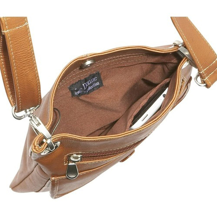 The Le Donne Leather Slim Crossbody Shoulder Bag is handcrafted using full grain Colombian Vaquetta leather. This luxurious cowhide leather bag features antique hardware, top zip closure, lined interior with a zippered back wall compartment for keeping valuables safe and secure a cell phone slide pocket. Front flap and zippered pockets provide additional storage space and quick access to frequently-needed items, and the Le Donne Leather Slim Crossbody comes with an adjustable shoulder strap for your carrying comfort.