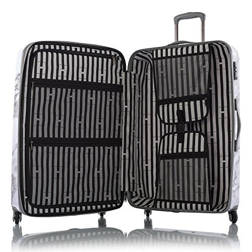 Details: Be a fashionable globetrotter with the Heys new Fashion SpinnersTM with print designs that reflect the latest runway trends. This sophisticated new style is the next generation of Heys popular 'Fashion SpinnersTM' luggage - it's been completely redesigned from the ground up with all-new features! Features a white marble inspired print 360° spinner wheels allow for effortless motion in different terrains Made from polycarbonate composite; a lightweight, durable and impact-resistant material used in the making of bulletproof glass Zipper-released expansion system allows for an extra 20% in packing capacity Fully lined interior with a stylish patterned fabric, with multiple zippered pockets Protected by a layer of clear coat, giving the surface a beautiful glossy shine Gel cushioned top and side handles
