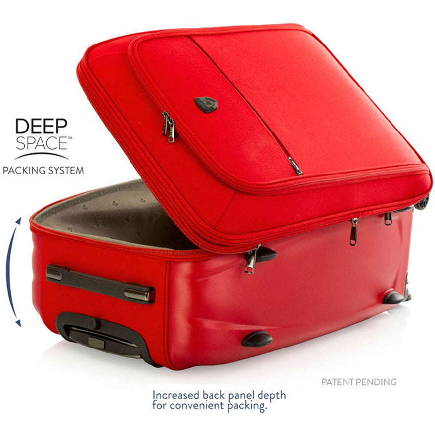- Unlike the traditional 50 / 50 split in most luggage, the Deep Spacetrade; System is designed with an increased back panel depth for easy and convenient packing
