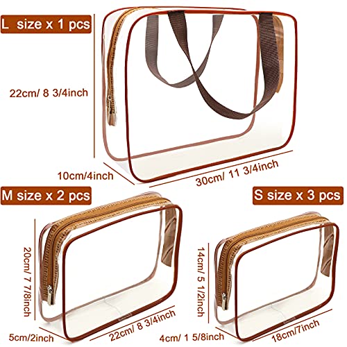 - ✈6 PACKS 3 DIFFERENT SIZES✈: 1 x Large clear makeup bag, 11.81" x 3.94" x 8.66"; 2 x Medium clear toiletry bag, 8.66" x 1.96" x 7.87"; 3 x Small clear cosmetic bag, 7.08" x 1.57" x 5.51". An ideal transparent cosmetic bag in travel, toiletry bag to the gym, bathroom organization, everyday carry/use bag and carry on luggage. You can also send a clear tote bag as a gift to your friends or relatives.