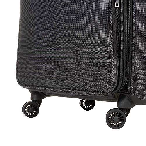 Details: Checked 24 inch luggage made from hard-wearing polyester Fabric. Double 360º-Spinner Silent Wheels (4 double wheels). Debossed front detail. Front pocket.