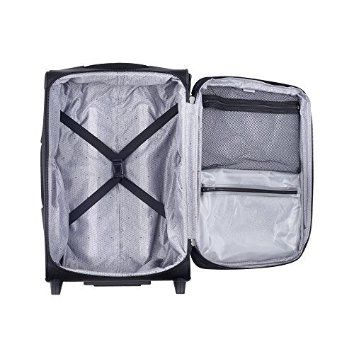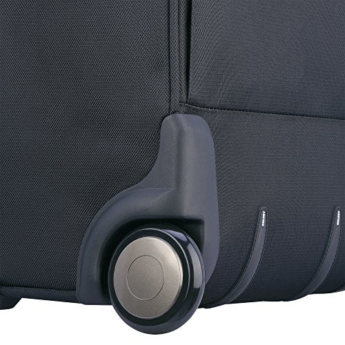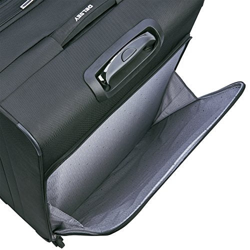 Details: This 2 wheeled rolling carry on by DELSEY is part of the sky max collection, which has tons of organization, a light yet tough construction at a great value. 9 total pockets for exceptional storage: three front pockets for maximum organization, side pocket for water bottle or small accessory, back pocket for magazines, mesh pocket and wet pocket in lid, shoe pockets in main compartment. Guardian self repairing interlocking zippers. Cushioned neoprene top and side carry handles. Easy to grab bottom handle. Integrated id tag. Interior tie-down straps. Expansion for maximum packing flexibility.