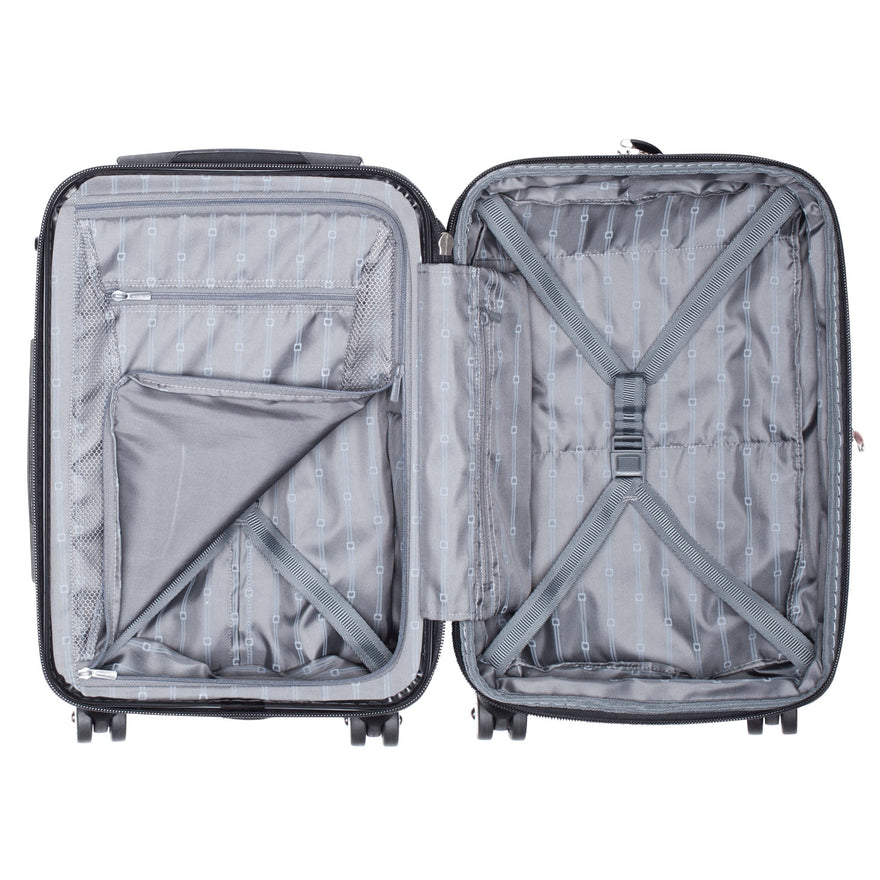 Details: The Helium Aero Collection from Delsey Paris is extremely lightweight and durable, designed for the frequent traveller. This international carry on four wheel bag is made to fit in the overhead bins of most domestic airlines. Unique to this size, this carry on features a large front zippered laptop compartment and a rear compartment for personal items. The case expands up to 2 inches for maximum packing flexibility. The wheels and handles on this case are exceptional and provide the traveller with ease of use and a smooth ride. The four double spinner wheels keep ZERO weight on your arm and the dual locking handle system gives you the option to carry the bag different ways. The case also has a top and side carry handle for easy lifting into overhead bins or car trunks. Lastly, this case features an integrated recessed TSA approved lock which allows only TSA agents to inspect your bag without damaging your bag or lock. The Delsey Luggage Helium Aero collection is protected under a Worldwide Limited 10 Year Warranty.
