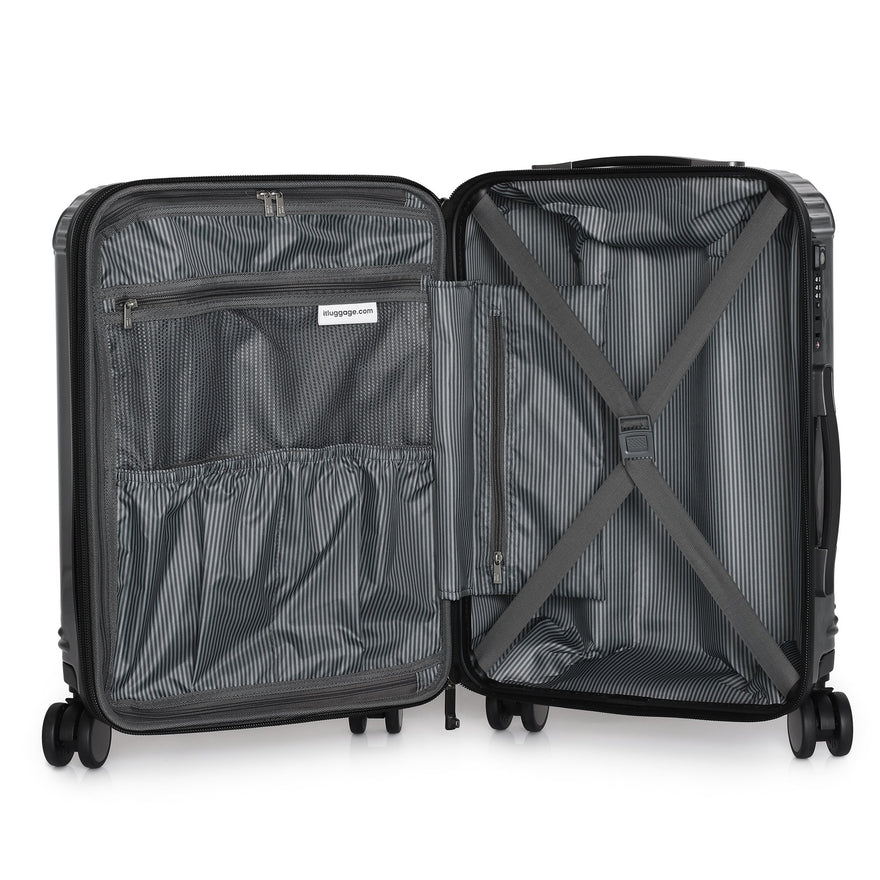 Details: Functional and fashionable, you can't go wrong with the Metamorphic collection from it luggage! Featuring a durable 100% polycarbonate hardshell exterior, and a fixed TSA lock, this collection is sure to keep your items safe and secure while traveling. Complete with a fully lined interior, inside of each bag you will find two zip pockets, two elastic slip pockets, and clothing tie down straps to keep your belongings neatly stowed away. Each bag offers up to 25% additional packing capacity with a single expander, and features easy-grab top and side handles to make your next trip as comfortable and smooth as possible. The Metamorphic collection is a must-have for your next adventure!
