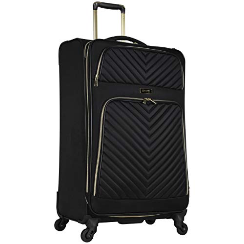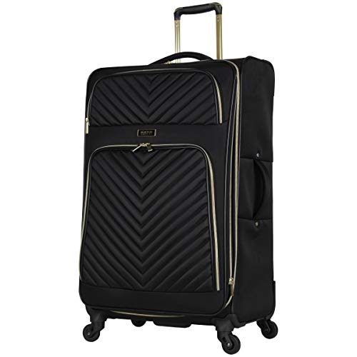 - Poly-twill chevron quilted 28" expandable 4-wheel upright. 4-wheel spinners allow smooth 360 degree rotation on uprights. Lightweight construction. Poly-twill with quilted chevron exterior and fully lined interior. Front exterior features a small zipper pocket for easily accessible items and a large gusseted zipper pocket.