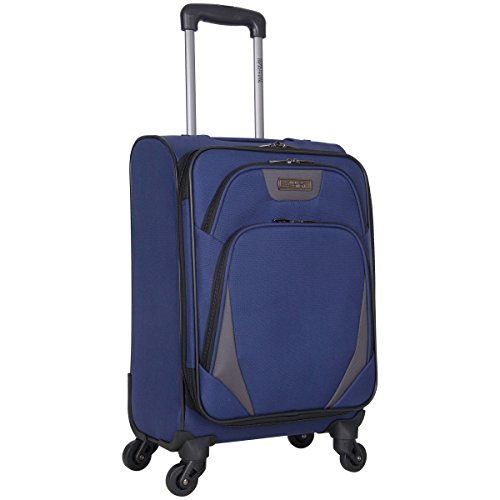 - 4-wheel spinners allow smooth 360 degree rotation. Lightweight construction. 600d polyester and dobby polyester exterior with fully lined tear-resistant interior. Dual front exterior zip down pockets for additional storage and quick access to commonly needed items.