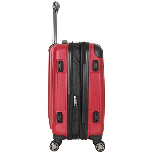 Details: 20 Inch expandable 8 wheeled upright carry-on in a stylish and innovative design constructed with a lightweight and durable abs exterior with molded corner reinforcement for maximum impact resistance. expansion zipper on main compartment allows for extra carrying capacity when needed and features garment restraints and zipper pockets. lid includes a large mesh u-shaped zipper pocket with elastic top shoe/accessory pockets and a mesh zipper pocket. Durable bottom grab handle and flexible top and side handles allows for easy lifting. side bezels allow upright to stand on its side. eight wheel construction allows uprights to be rolled in any direction. retractable locking handle system. size: 19.5 inch h x 14 inch w x 10 inch – 11.5 inch d