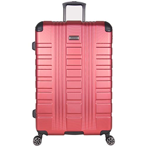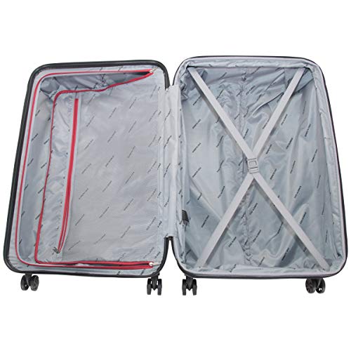Details: 8-Wheel spinners provides effortless 360 degree navigation allowing you to get to where you're going faster. Built in TSA lock is an approved keyless combination lock that keeps your items secure and allows only TSA agents to open and inspect your bag. Lightweight construction helps you meet airline weight restrictions, to avoid unnecessary airport fees. Expands an additional 2.0" for greater carrying capacity. Recyclable pet exterior is lightweight and practically indestructible. Molded corner guard reinforcements for absorbing and deflecting shock for maximum impact resistance. Self-repairing coil zippers meant for long-lasting use. Flexible top and bottom grab handles allow for easier lifting and maneuvering. Front lid features a large u-shaped zipper pocket allowing for double sided packing. Expandable main compartment interior features a large u-shaped, ventilated, mesh zipper pocket. Under-the-lid section features a large u-shaped zipper pocket and a full length ventilated, mesh zipper pocket. Retractable trolley handle retracts to be 41" tall with a locking push button mechanism. Molded side feet allow luggage to stand upright on its side. Overall Dimensions: 30.0" h x 20.5" L x 12.0"-14.0" D (includes wheels), weight: 11.1 lbs, 10 year limited warranty.