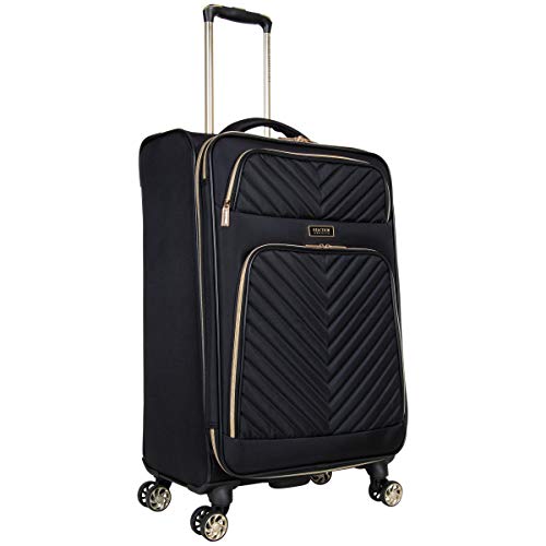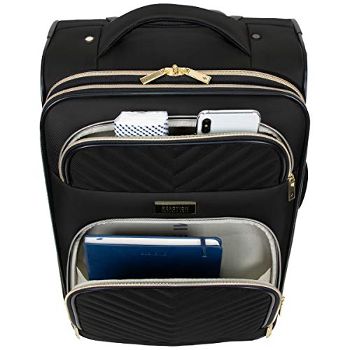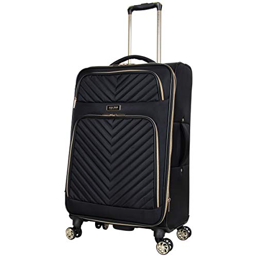 Details: Finally, travel made trendy with the stylish polyester-twill chevron luggage from Kenneth Cole Reaction’s Chelsea luggage collection. Complete with a fully lined, tear-resistant interior, this luggage also expands an additional 2.0 inches, ensuring that you have plenty of space for all your needed belongings. Its lightweight construction helps you meet airline weight restrictions to avoid unnecessary airport fees, while its 8-wheel spinners provide effortless 360-degree navigation allowing you to glide quickly through the airport. The main compartment interior features a hanging side zipper pocket and garment restraints to hold belongings in place. The under-the-lid section includes a mesh zipper pocket and a transparent, clear PEVA gusseted pocket for toiletries. The front exterior also features a small zipper pocket for easily accessible items and a large gusseted zipper pocket for additional storage organization. Padded top and side handles allow for easy maneuvering, and a bottom grab handle allows for easier lifting. Additionally, a retractable trolley handle extends to be 41 inches tall with a locking push button mechanism. Fashionable and functional, Chelsea luggage also boasts fashion-forward gold hardware with premium self-repairing coil zippers designed for long-lasting use. Carry-on size meets most U.S. based airline carry-on size requirements and fits into most airline overhead bin compartments. Backed by a manufacturer 10-year limited warranty. ★ Overall Dimensions: 27.0” H x 15.0” L x 10.0”-11.5” D. ★ Packing Dimensions: 24.0” H x 14.5” L x 9.5”-11.0” D. ★ Weight: 8.4 lbs. ★
