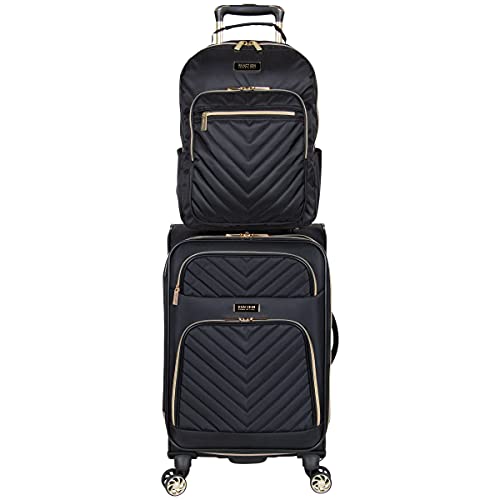 Details: Designed for the trendy, modern business women whom value both style and function, This 2-piece set from Kenneth Cole REACTION features a 20” carry-on suitcase and a laptop backpack, both from the ‘chelsea’ collection. Luggage meets most yours. Based airline carry-on size requirements and fits into most airline overhead bins. Multi-directional 4-wheel spinners allow smooth, 360°-degree movement over any rough surface for complete mobility free-weight rolling. Lightweight construction helps you adhere to airline weight restrictions to avoid unneeded airport fees. Expands an additional 1. 5” inches for greater carrying capacity when needed. Also has a stylish Polyester-twill with quilted chevron exterior and fully lined tear-resistant interior. Main compartment features side zipper pocket, secure garment restraints to hold belongings, and interior lid section features full length Mesh Zipper pocket. Front exterior features small zipper pocket for easily accessible items and a large gusseted zipper pocket. Sturdy, locking retractable push-button telescopic trolley handle retracts to be 41 inches tall and is conductive for simple, one-handed use. Backpack features stylish chevron quilted polyester exterior w/fully lined tear-resistant interior. Padded pocket fits most laptops up to 15. 0-Inch screen. Roomy, main compartment includes a padded laptop and tablet pocket and 2 open top accessory pockets. Rear padded compartment features room for a laptop or additional room for business essentials. Front exterior features a zipper pocket for easy access to frequently needed items and zip around pocket with an extensive organizer. Rear exterior features padded shoulder straps for maximum comfort while on the move. Features premium self-repairing gold coil zippers meant for long lasting use, as well as dual side exterior open top beverage/ holster pockets. The rear also features a trolley strap that fits over most luggage upright handles for hands-free carrying. Luggage backed by a manufacturer 10-Year Limited . Backpack backed by a manufacturer lifetime limited .