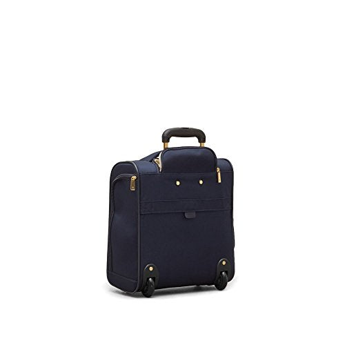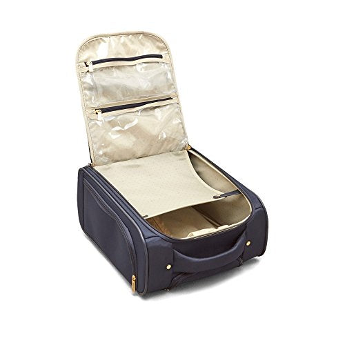 Details: Polyester-twill chevron quilted 2-wheel under seater. Lightweight construction. Poly-twill with quilted chevron exterior and fully lined interior. Front exterior features a zip down organizer with three zipper pockets to store accessories. Main zip down compartment consists of a garment panel with two wet zipper pockets. Rear exterior includes a trolley strap to fit over most luggage upright handles, for hands free carrying. Dual side exterior zippered beverage/ accessory holster pockets. Padded, easy-to-grab top handle. Sturdy front bottom feet keep bag upright and in-line skate wheels provide swift mobility. Retractable and locking trolley handle system. Manufacturer 10 year limited warranty. Overall size: 15.0" h x 13.5" w x 7.5" D. Weight: 5.65 lbs.