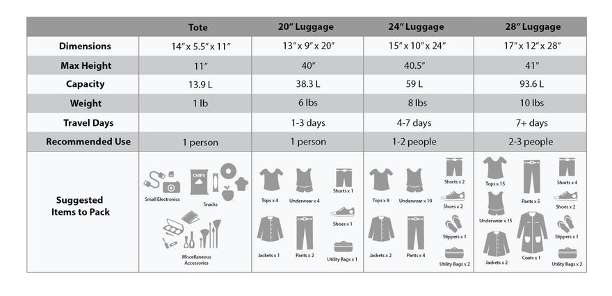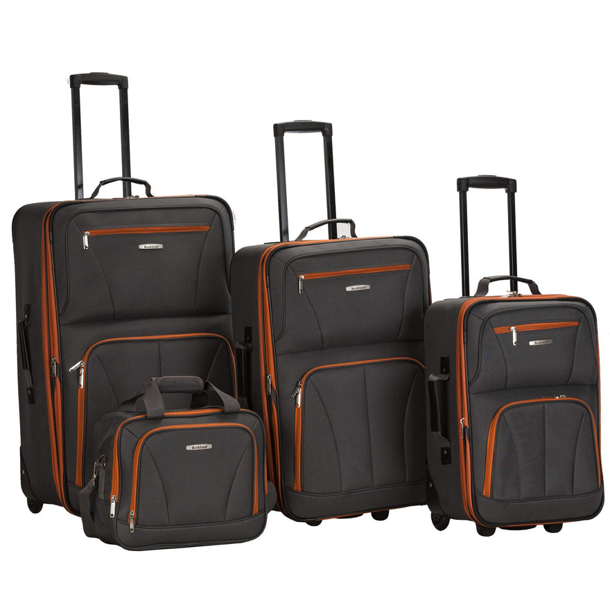 Details: This beautiful deluxe 4-piece expandable luggage set is manufactured with a patented heavy duty EVA-molded hi-count fabric. This set is perfect for the serious and experienced traveler! Manufactured with the very best heavy duty polyester and PVC backing, this luggage set is designed for the traveler on the go and comes with three expandable uprights and a flight tote bag. It comes packed with features including: an inside retractable handle, EZ-Roll in-line skate wheels, back zippered secured pockets, top and side comfort grip handle, stability bars at the bottom to avoid tilting, and locks & keys. Upright features include: Clear in-line skate wheel system for smooth ride Push-button self-locking internally stored retractable handle system Ergonomic and comfortable padded top and side grip handles Two front full size zipper-secured pockets Three internal organizational pockets for all your traveling needs Each upright's interior is fully lined with a durable and elegantly imprinted lining Elegant silver pewter heavy duty industrial hardware Carry-On Flight Tote Bag features include: Elegantly imprinted full interior lining Detachable and adjustable non-slip shoulder strap Spacious main compartment Maximum strength industrial hardware 19-inch Carry-on Upright: 20 inches high x 12. 5 inches wide x 7. 5 inches expandable to 10 inches deep (with wheels). 6 lbs. 24-inch Upright: 24 inches high x 16 inches wide x 10 inches expandable to 12 inches deep. 8 lbs. 28-inch Upright: 28 inches high x 18 inches wide x 12 inches expandable to 14 inches deep. 9 lbs. Carry-On Flight Tote Bag: 14 inches wide x 11 inches high x 5 inches deep – 1 lb.