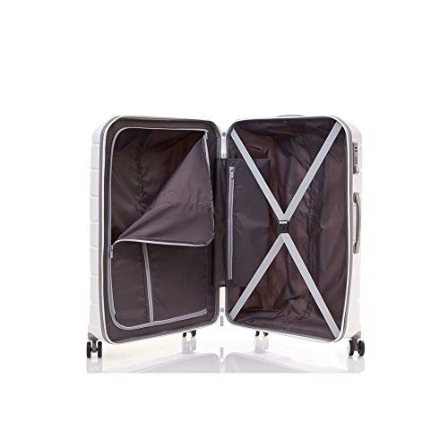 Details: Samsonite Octolite Spinner Unisex Medium White Polypropylene Luggage Bag TSA Approved I72005005. This bag stands out for its geometric and futuristic design, its structure was created with the latest technology and cutting-edge material, gaining ultra-modern features. In addition to bringing an elegant design thanks to its matte colors. With each trip you will be able to prove its great storage capacity, convenience and style.TSA coupled padlock. Product dimensions: 27in (H) x 19in (L) x 13in (W). Material: Polypropylene. Gender: Unisex. Color: White. Capacity: 78.65 liters. Hardware color: Silver. Style: Luggage bag. Octolite Spinner series.