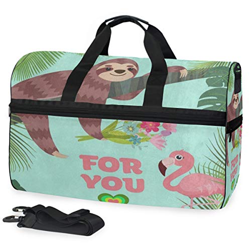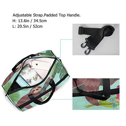 Travel Tote Luggage Weekender Duffle Bag, Flamingo Sloth Palm Tree Large Canvas shoulder bag with